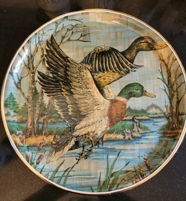 2 Flying Ducks Woven Laquered Gold Trimmed 14 Round Bamboo Serving Tray Ebay